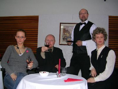 Strenge alte Dame beim Restaurantbesuch mit ihrem "weltlichen Neffen". ( ICH wusste garnicht wie ALT ich aussehen kann... :-)ht spärlich bekleideten Erwachsenen auf Zelluloid..äh, Röhre gebannt.....;-)